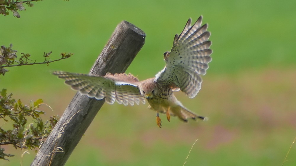 La silhouette du Faucon crécerelle épinglée dans le ciel, dite en «Saint-Esprit», est une vision familière dans la campagne, notamment audessus des talus de route ou de chemin de fer. Le corps presque vertical, les ailes frémissantes et la longue queue écartée servant de stabilisateur pour immobiliser la tête, cet amateur de petits rongeurs scrute méthodiquement le terrain en changeant régulièrement de point de fixation.