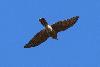 Les ailes sont assez pointues et la queue est longue. Chez le mâle, la tête est gris-bleu, ainsi que le croupion et la queue, noire à son extrémité. La femelle est plus rousse, barrée de noir. Vol sur place caractéristique.