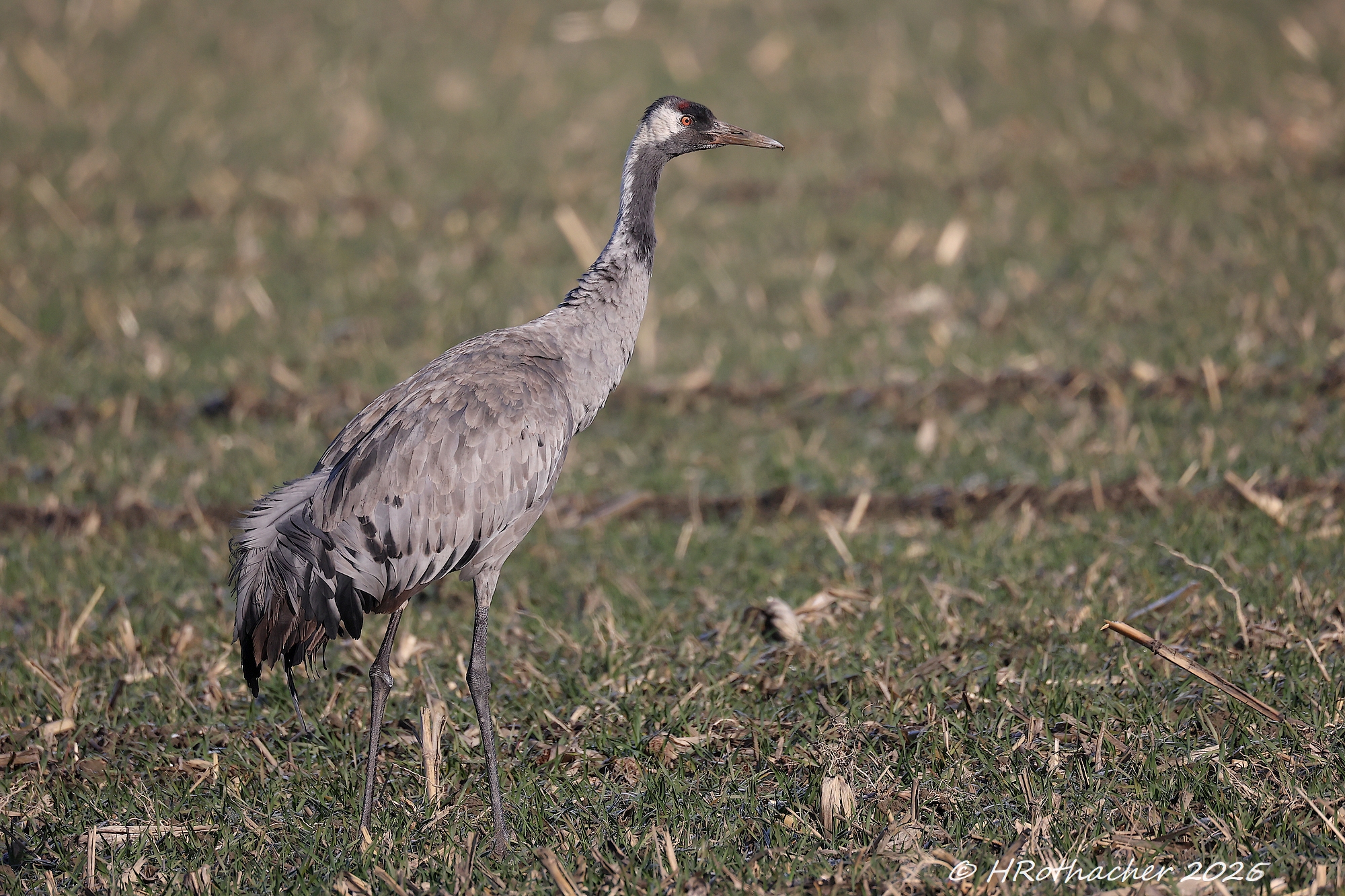 T rop rarement, des coups de trompette se font écho dans la grisaille de l’arrière-automne, annonçant les immenses silhouettes des Grues cendrées en route vers le sud, venues des marécages boisés du nord de l’Europe. C’est à l’onomatopée de ses cris que l’espèce doit son nom dans plusieurs langues. Connue pour ses danses nuptiales spectaculaires et ses formations migratoires géométriques en «V», la Grue cendrée est de tous les oiseaux européens celui qui présente la plus haute stature.