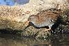 Long bec rougeâtre; joues, gorge et poitrine adoisées; flancs barrés de noir; sous-caudales blanches; voix perçante. La femelle est plus terne que le mâle.