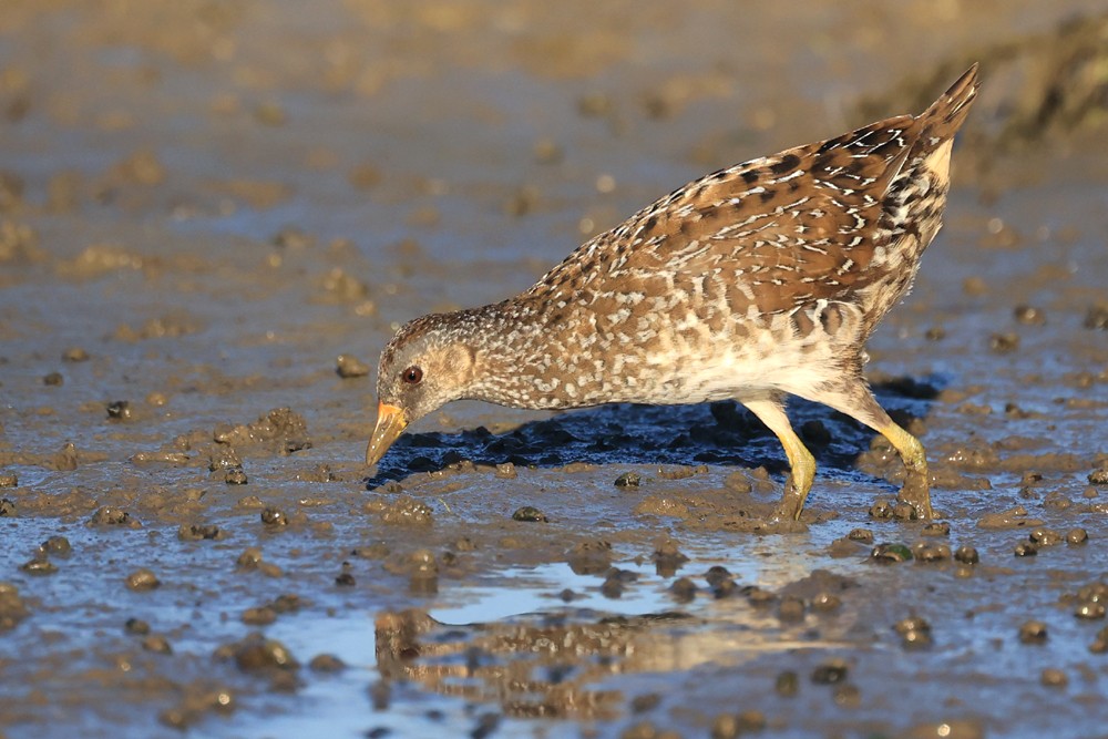 Al’orée des roseaux au crépuscule, une petite silhouette rondelette hésite à s’aventurer à découvert, les tics nerveux qui agitent sa queue semblant trahir son anxiété. A la moindre alerte, la Marouette ponctuée disparaîtra comme par enchantement sous le couvert. De jour, elle mène une vie secrète dans la roselière à l’abri des regards indiscrets et reste très difficile à détecter.