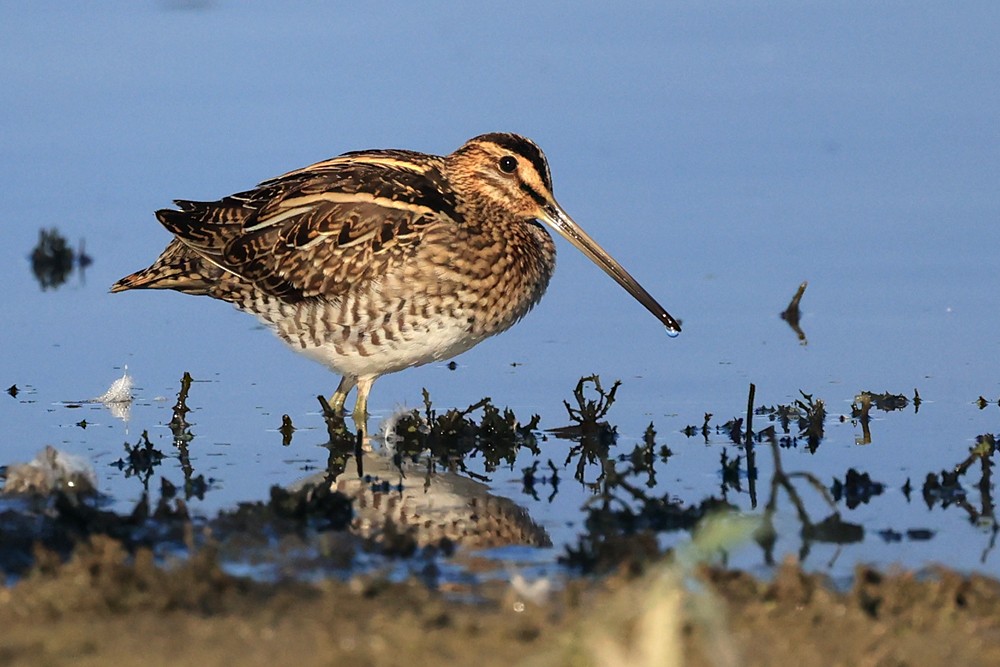 Personne ne se douterait de leur présence si les Bécassines des marais, invisibles lorsqu’elles sont au sol ne jaillissaient, comme catapultées en l’air à quelques mètres de l’Homme qui s’approche. Les unes après les autres, elles fusent dans le ciel comme un feu d’artifice, fendant l’air de leur bec en aiguille. Comme si elles redoutaient un coup de fusil, elles montent en zigzag, prennent vite de l’altitude et font mine de disparaître au loin. En fait, elles reviennent rapidement dès que le terrain est libre, au plus tard à la nuit tombée.
