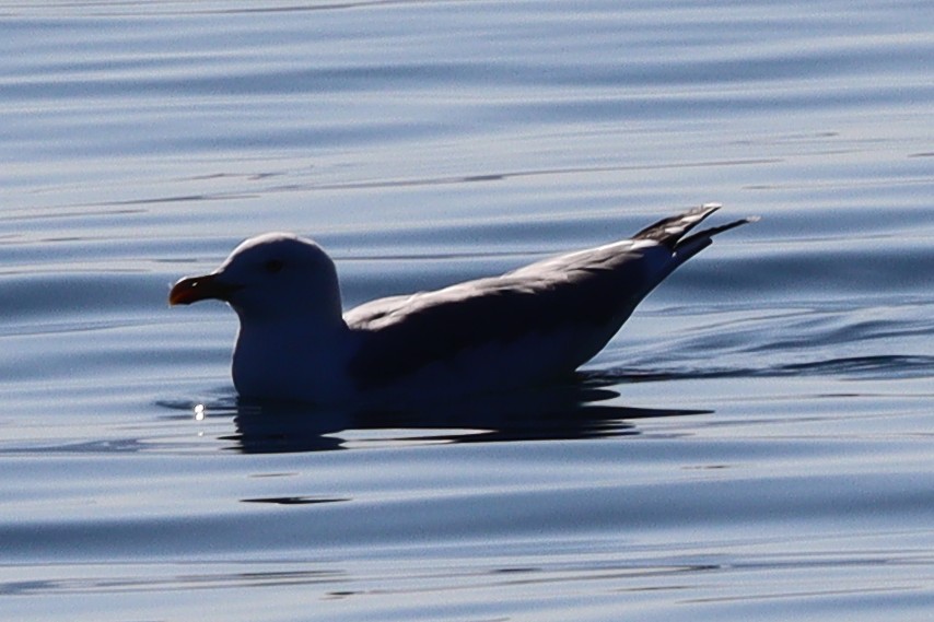 Grand goéland avec dos gris et bout des ailes noir; bec jaune avec tache rouge; pattes jaunes. Voix: "kiou" et nombreux autres cris.