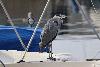 Manteau gris, noirâtre sur les rémiges; huppe noire; tête et cou blanchâtres striés de noir; dessous grisâtre; bec jaune; silhouette typique au vol, comme au posé; sexes identiques.
