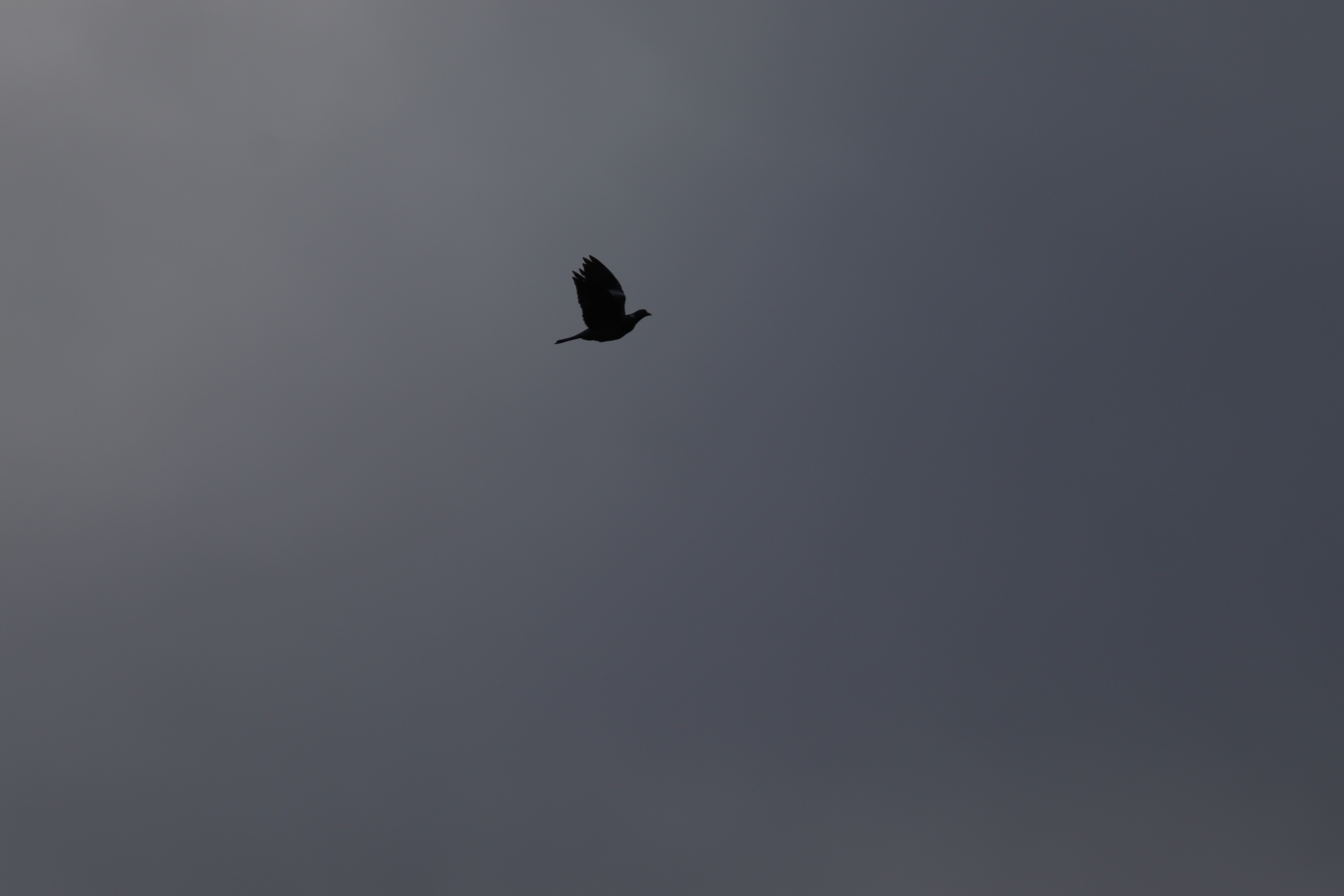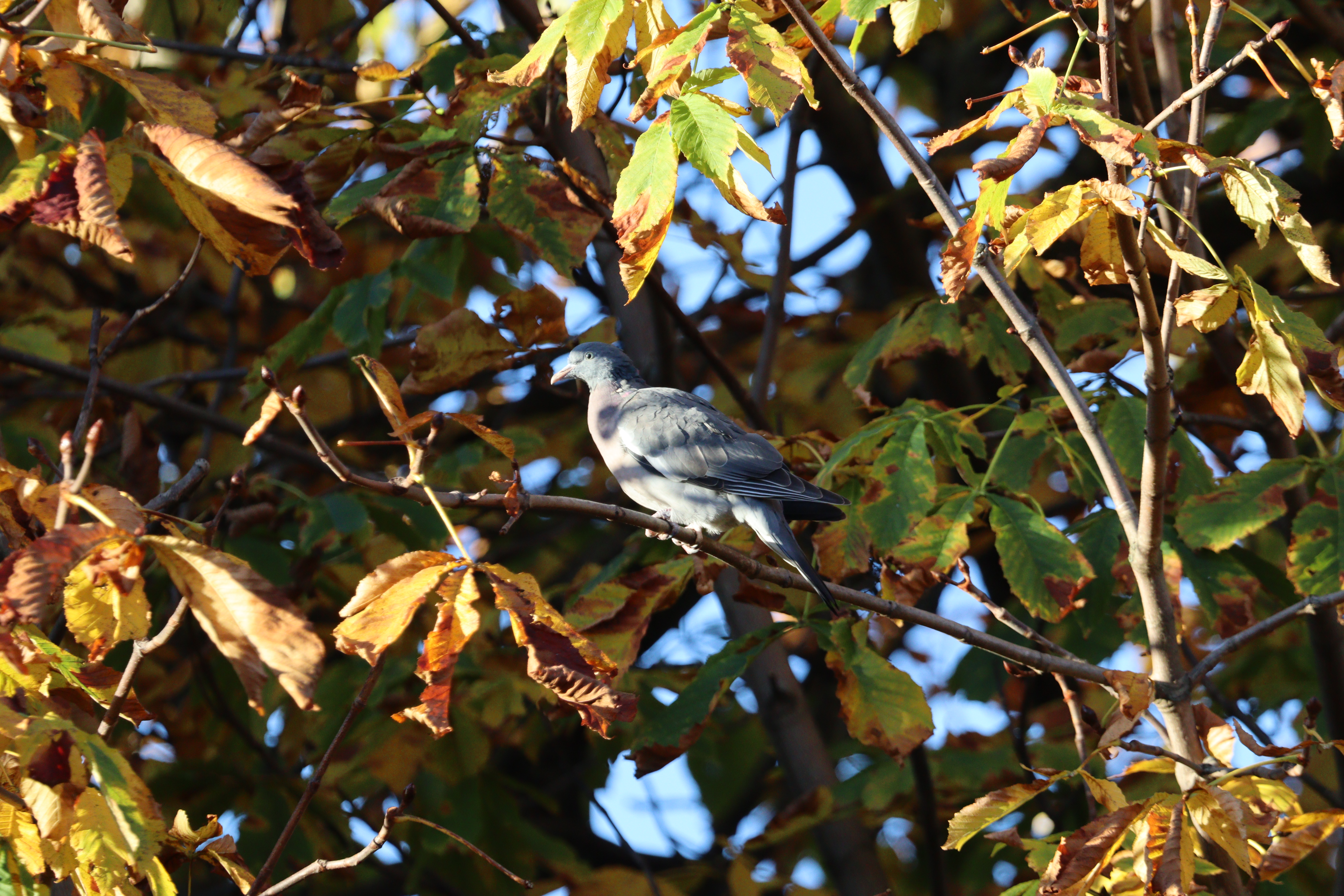 Avec l’automne arrivent les grands vols de Ramiers, qui se concentrent par milliers le long des défilés du Jura, en route vers le sud de la France et l’Espagne où ils passeront la mauvaise saison. Les grasses palombes lancées à pleine vitesse sont les cibles privilégiées du Faucon pèlerin et de l’Autour, qui prélèvent leur dîme au passage, mais aussi des tireurs embusqués qui les accueillent par des volées de plomb. Au printemps, ces migrateurs si convoités seront bien moins nombreux à revenir gronder doucement, comme par reproche, dans la frondaison des arbres.