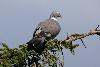 Tête et dessus du corps gris-bleu; bout de la queue noirâtre; ailes marquées d'une tache blanche aux "épaules" et de noir à l'extrémité; cou avec reflets mi-verts, mi-pourpres et une tache blanche de chaque côté; poitrine vineuse; sexes identiques.