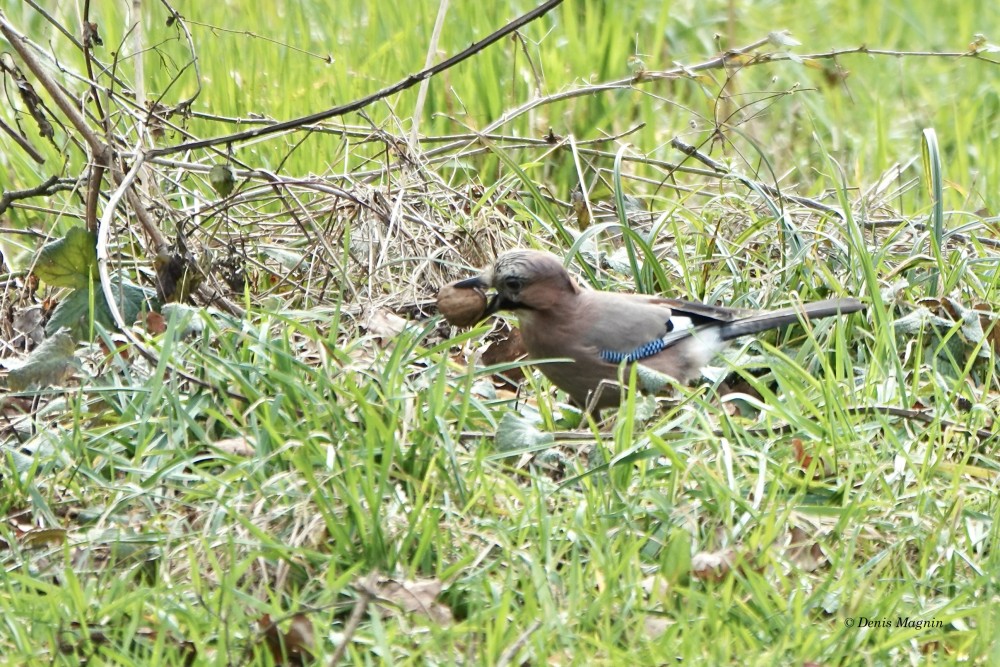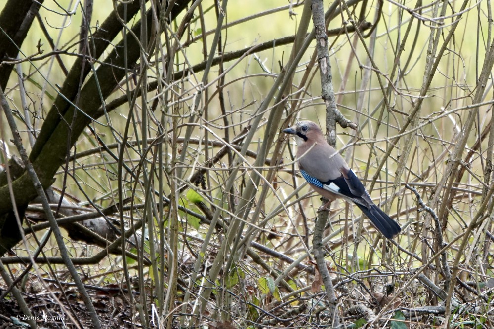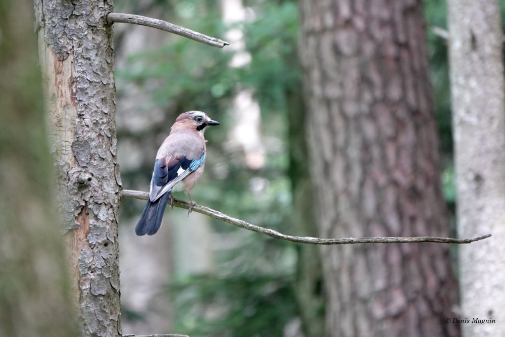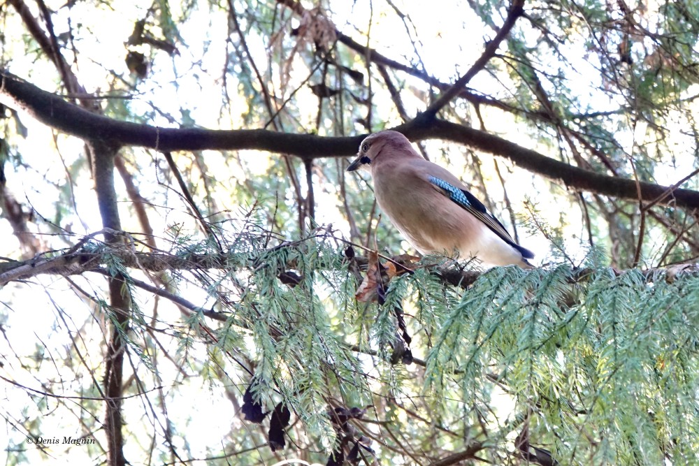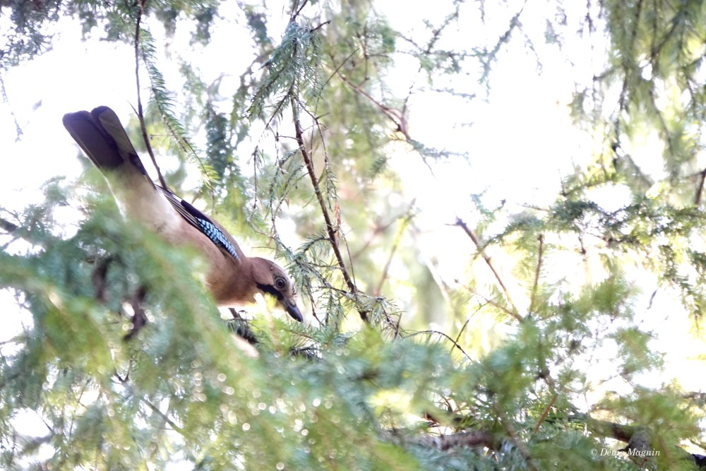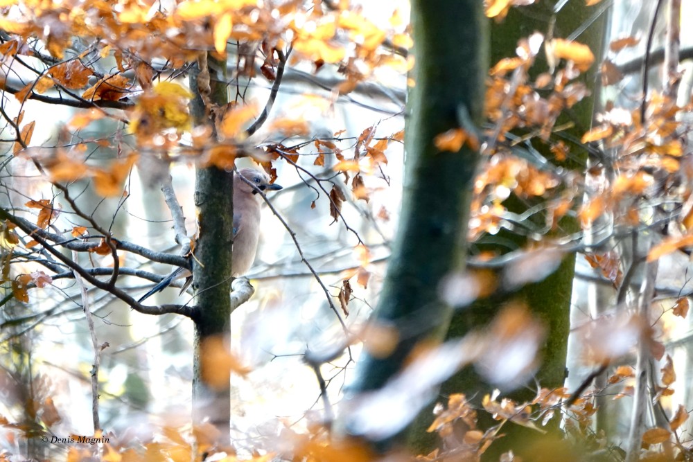 N’en déplaise à La Fontaine, l’esthète de nos corvidés n’a rien à envier au paon, pouvant se vanter de son plumage autant que de son ramage: même si sa voix est réputée disgracieuse en raison des cris d’effroi rauques qu’il pousse à la moindre alerte, il possède d’exquis talents musicaux cachés, qu’il ne dévoile que dans l’intimité, à ceux qui prennent la peine de l’écouter. Rendu timide par ses couleurs vives, le Geai des chênes est bien plus discret que ses cousins noirs aux moeurs aériennes, son vol chaloupé ne s’éloignant guère du couvert forestier, où son cul blanc s’empresse de disparaître.