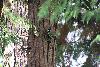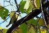 Tête et cou noirs; joues blanches; bande noir sur le jaune de la poitrine, légèrement plus large chez le mâle; dos vert olive.