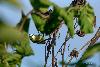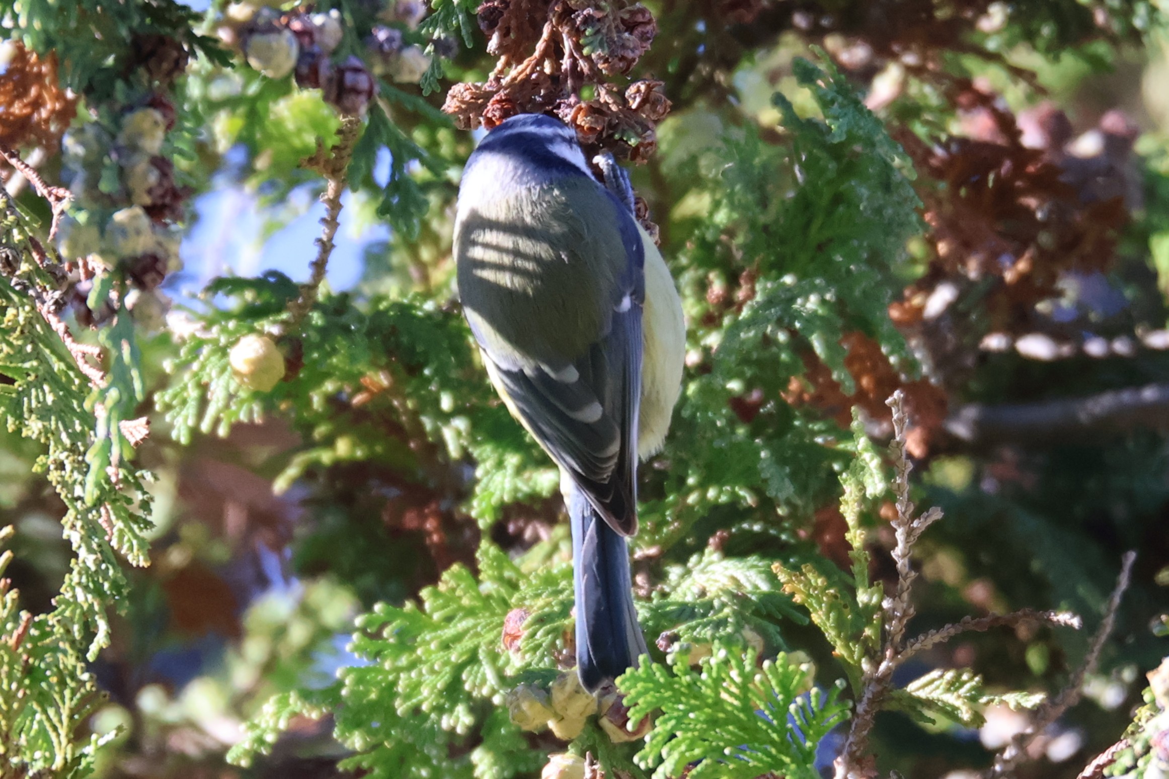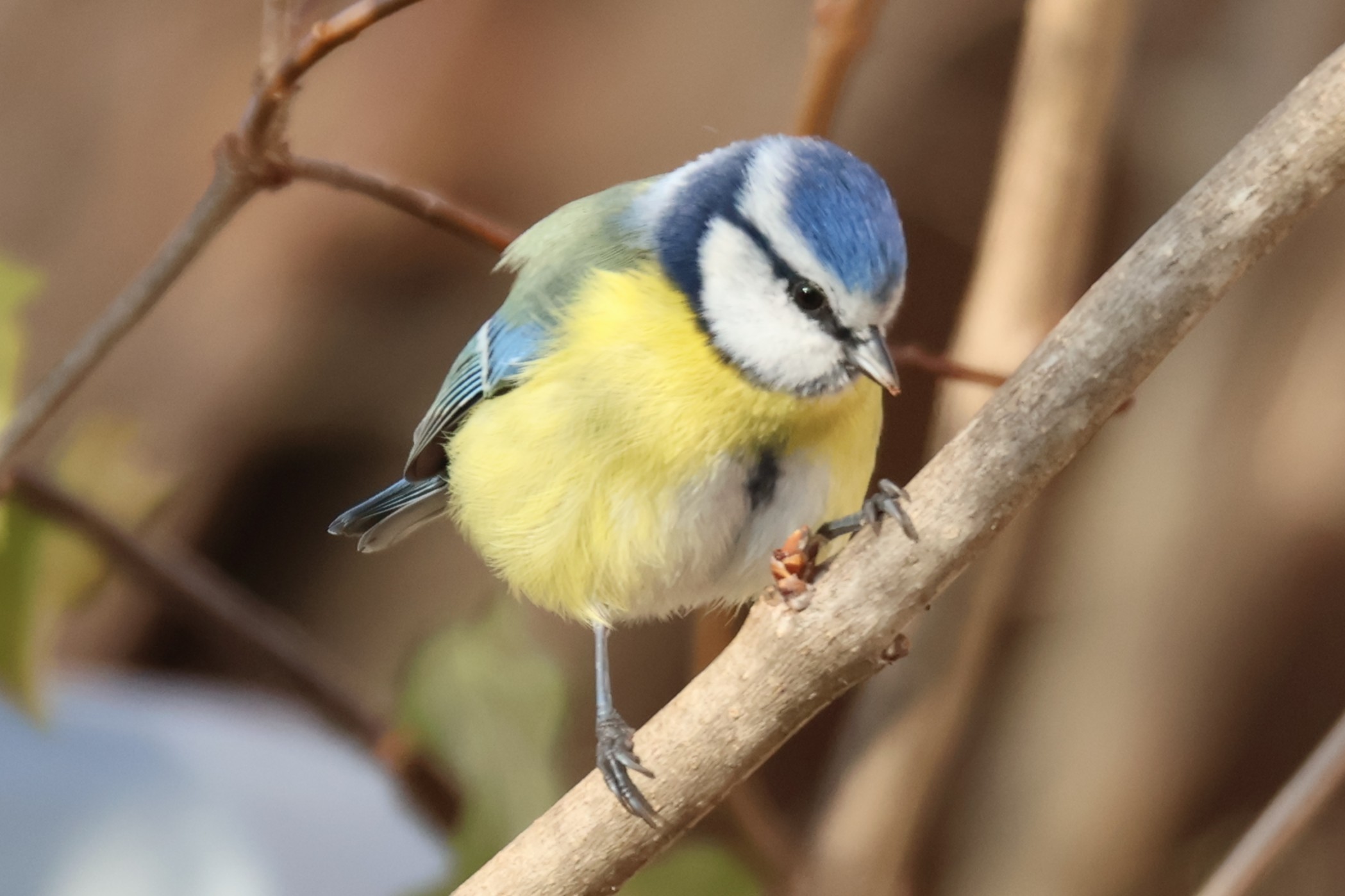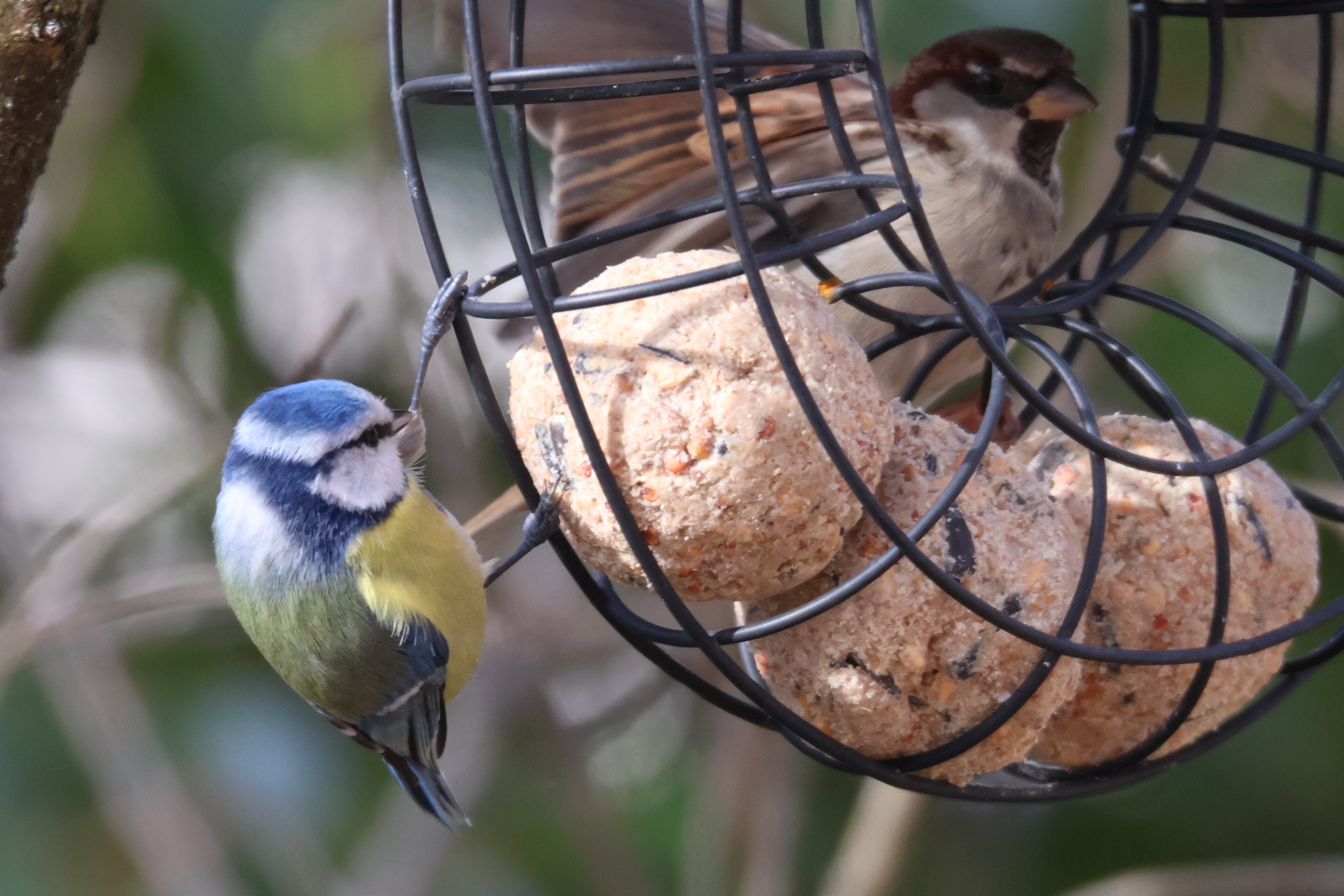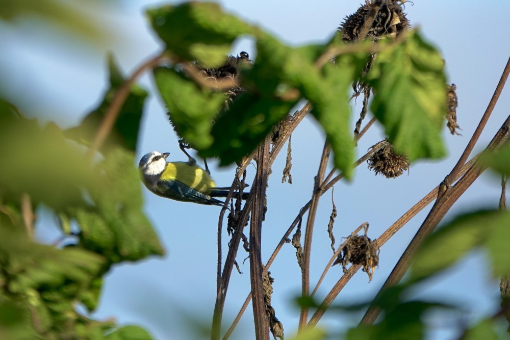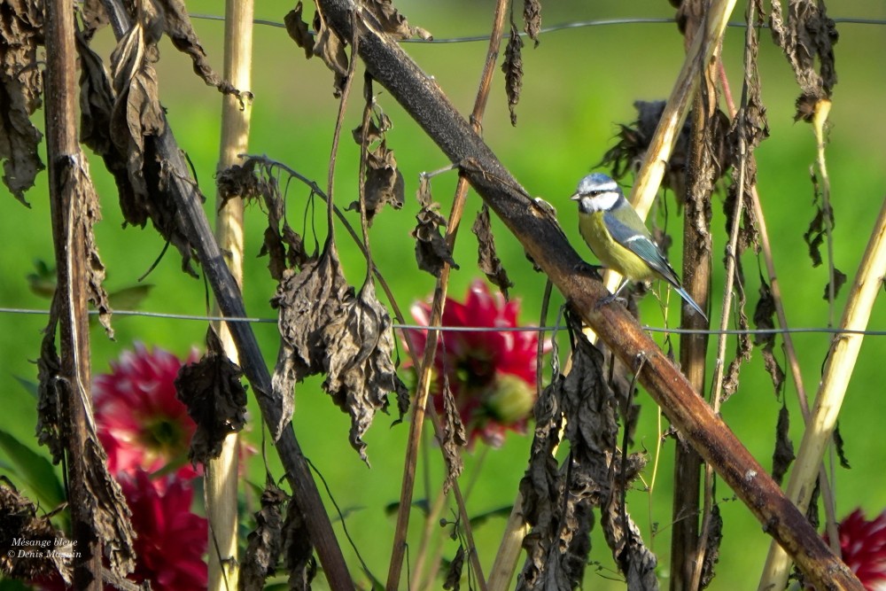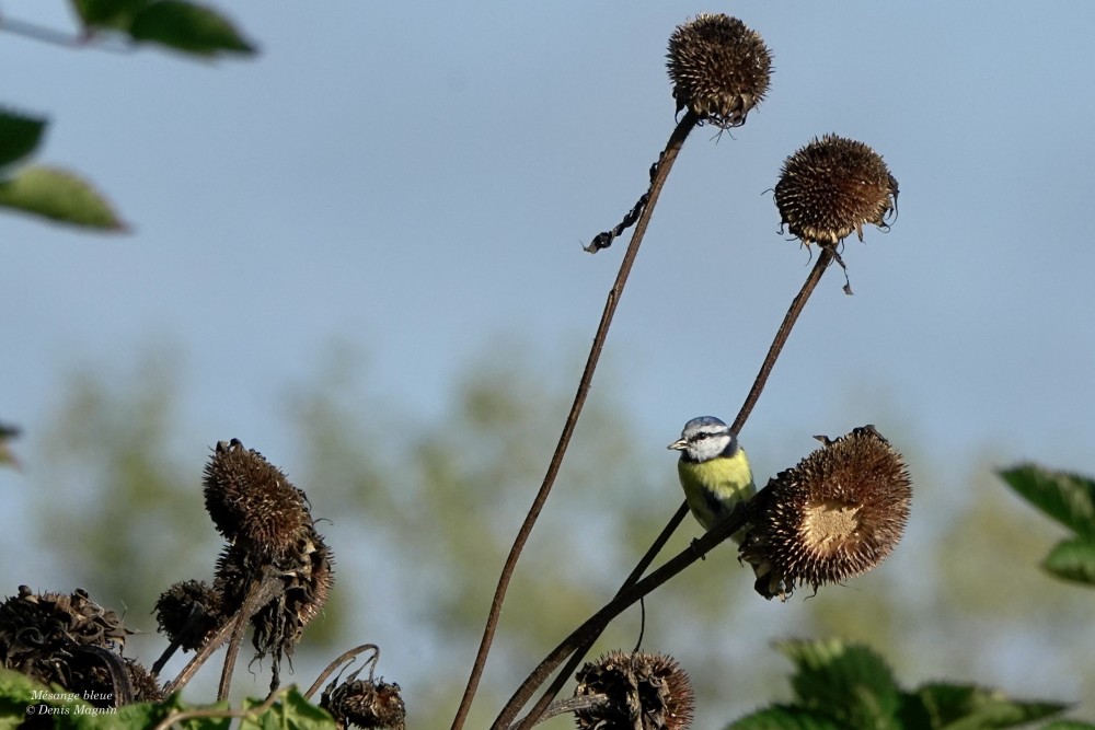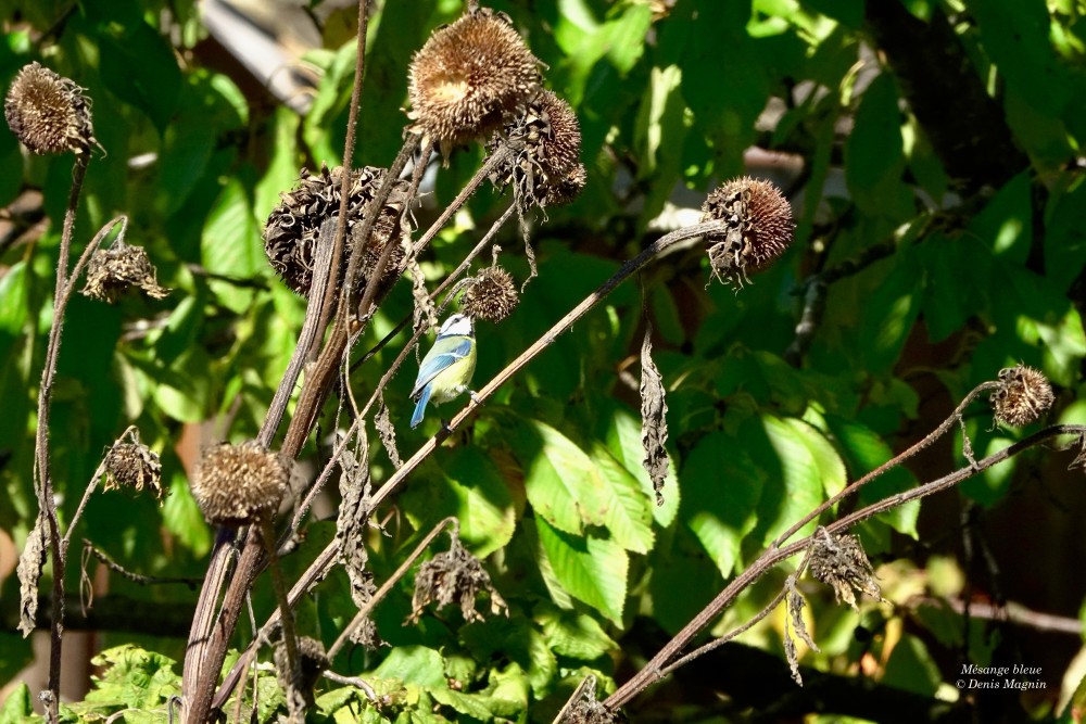 Emerveillements de l’enfance que sont les allées et venues des mésanges, toutes si semblables et si différentes à la fois, se succédant à la mangeoire. La petite bleue est souvent la plus guettée, ses couleurs vives étant des plus attractives, avec un délicat trait de pinceau prolongeant l’oeil et lui apportant une touche de féminité. Son caractère de chipie lui permet de tenir tête à sa grande concurrente Charbonnière et donne lieu à des intimidations aux issues incertaines, en regard desquelles les lions à la télévision sont bien ennuyeux.