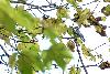 Plumage bleuté, vert olive et jaune; joues blanches; calotte séparée du masque noir par une bande blanche; sexes identiques.