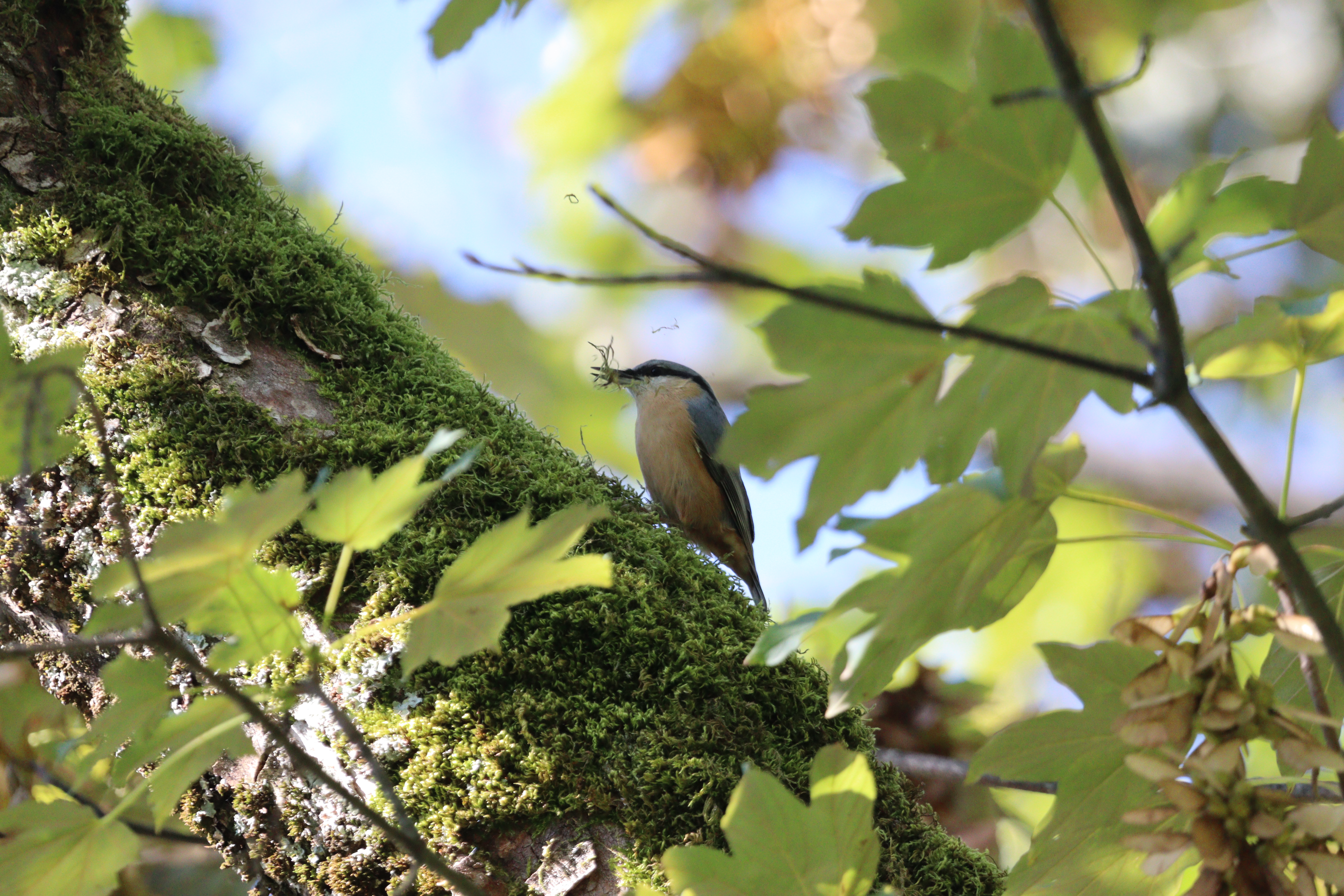 Un outil en remplace un autre chez la Sittelle, qui fait usage de son long bec plus comme d’une truelle que d’un pic. Ce transfert fonctionnel la rend dépendante du Pic épeiche, dont la présence est souvent déterminante pour l’offre en cavités de nidification. Elle ne se contente pas de squatter pour autant car, comme l’indique son nom, c’est une experte en maçonnerie dont la spécialité est de réduire l’orifice d’accès à sa taille par un torchis pouvant prendre l’aspect d’un bouchon extrêmement solide.