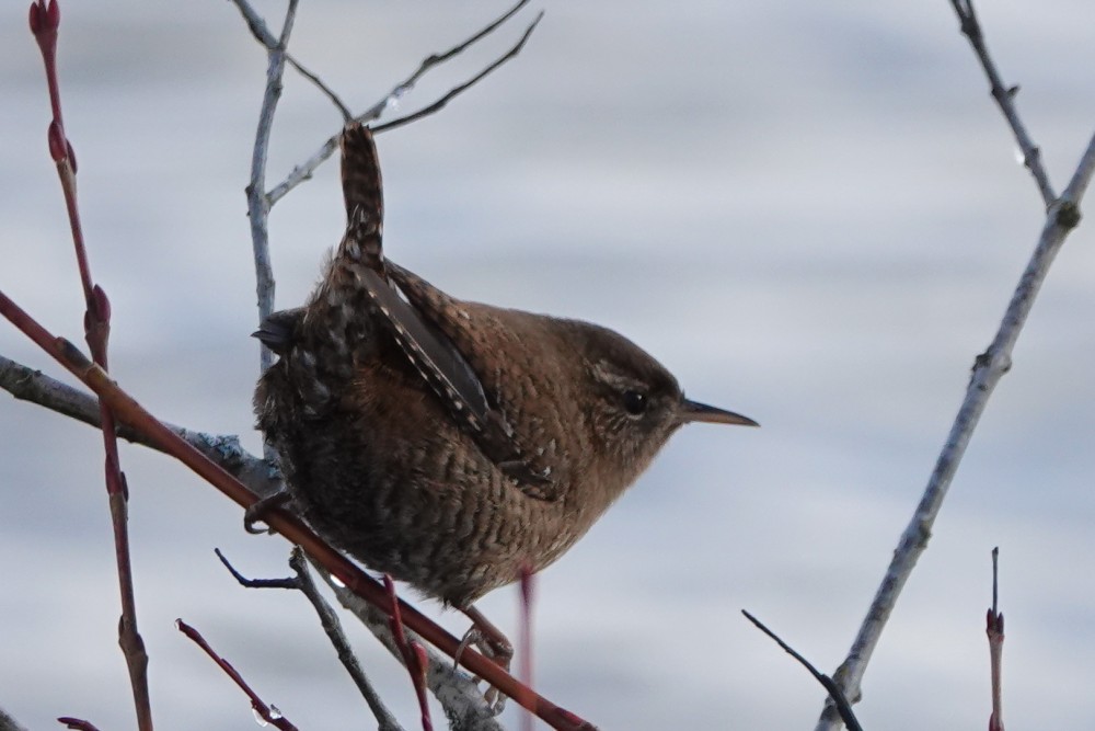 Brun-roux barré de noir sur la queue, les ailes et les flancs; petite queue ordinairement dressée à la verticale; voix forte et stridente; sexes identiques.
