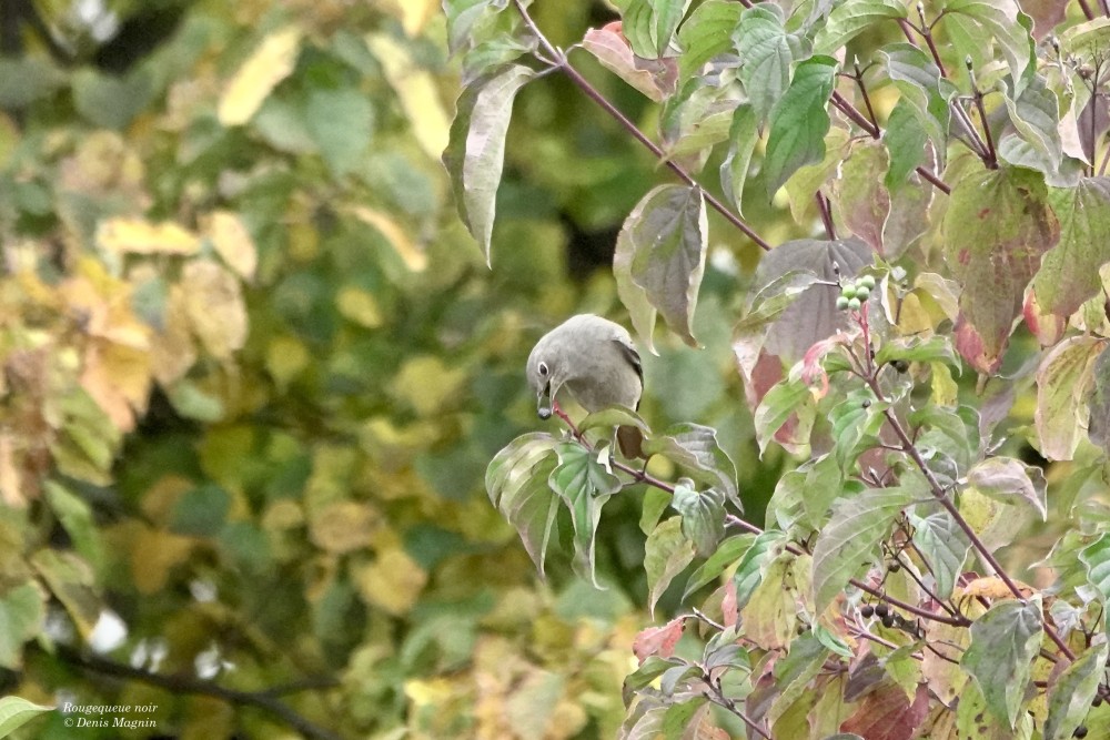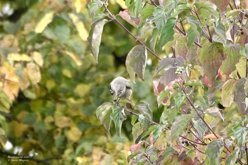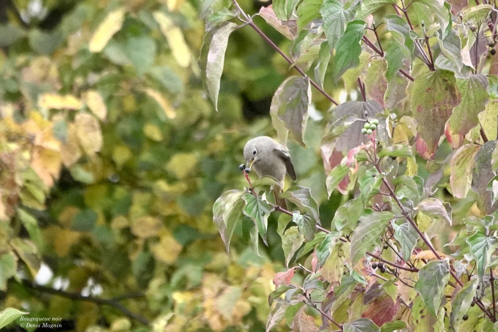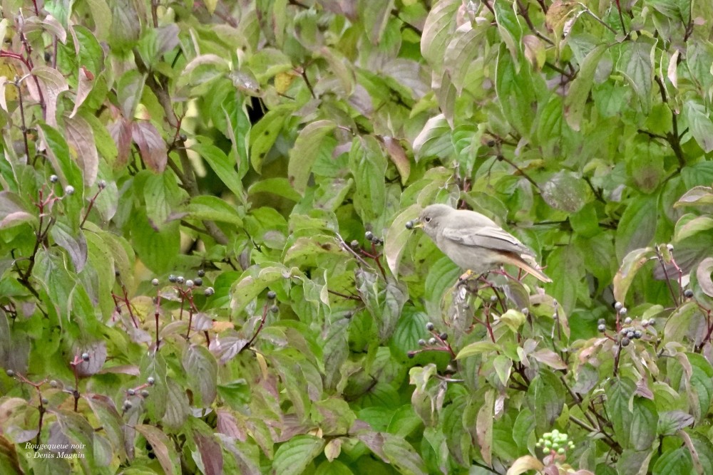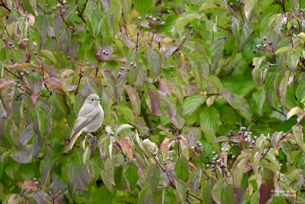 Mâle noirâtre, plus gris en hiver avec und peu de blanc aux ailes; femelle et jeunes gris-brun: certains mâles nicheurs âgés d'une année ont encore un plumage semblable à celui de da femelle. Les deux sexes ont le croupion et la queue roux vif.