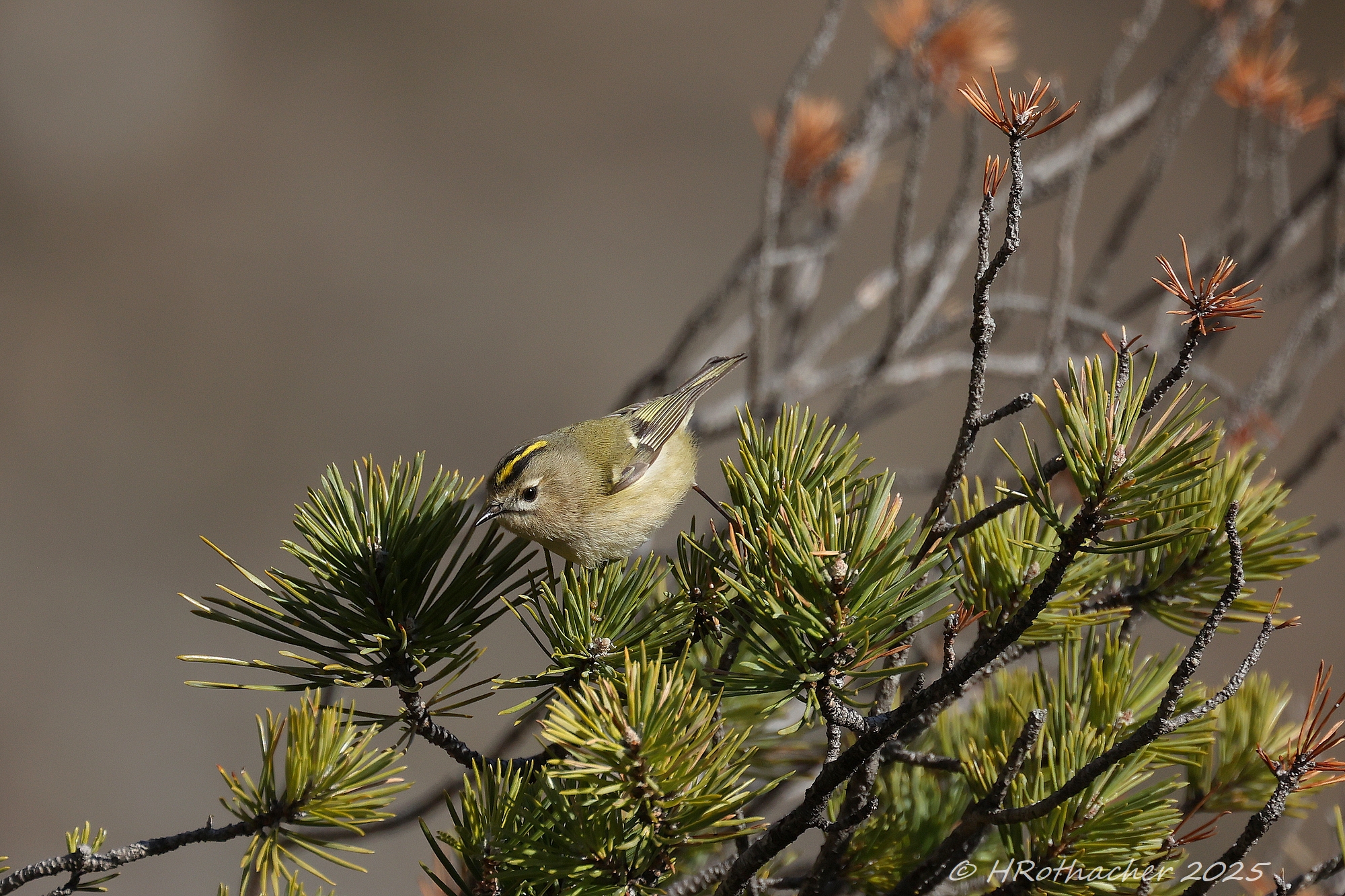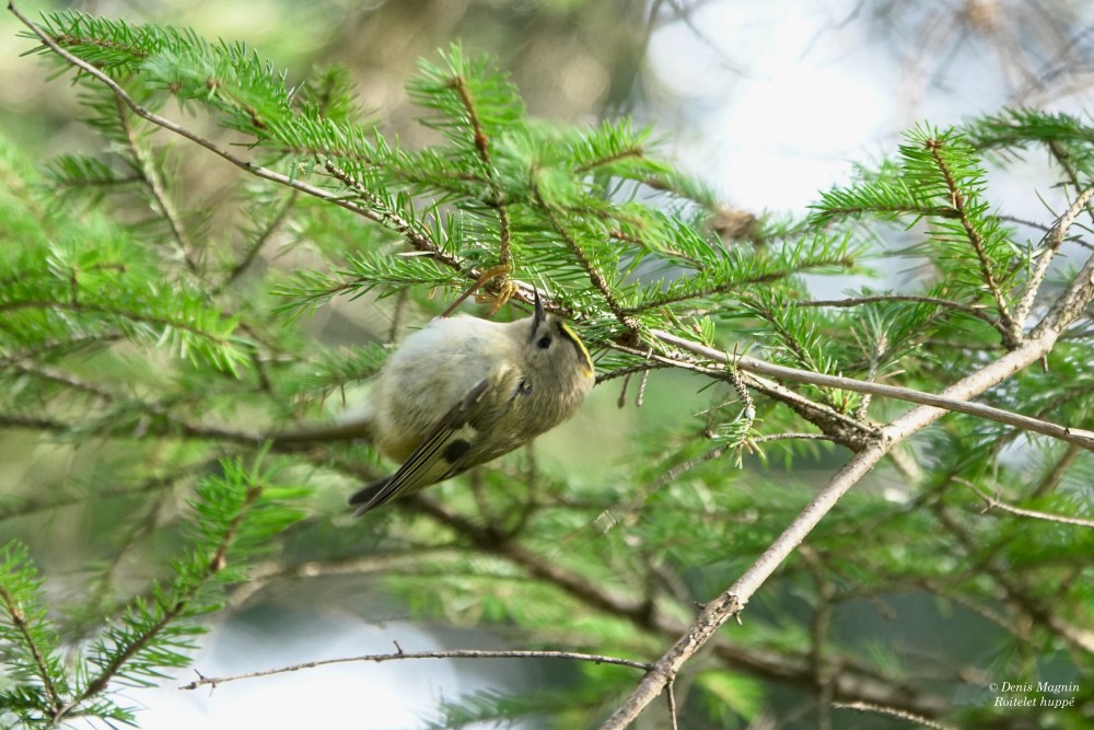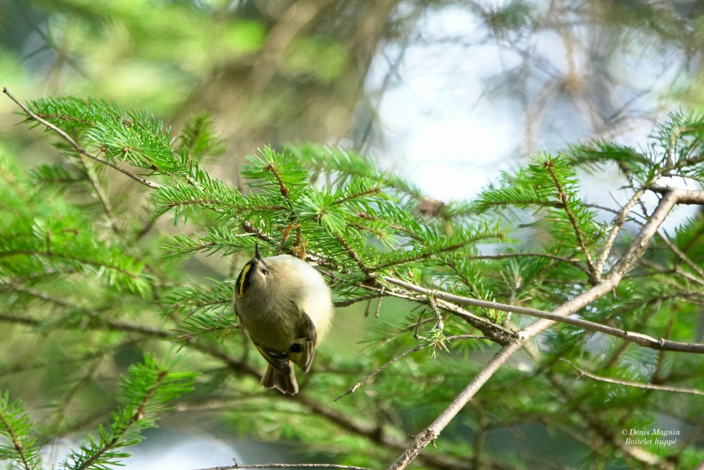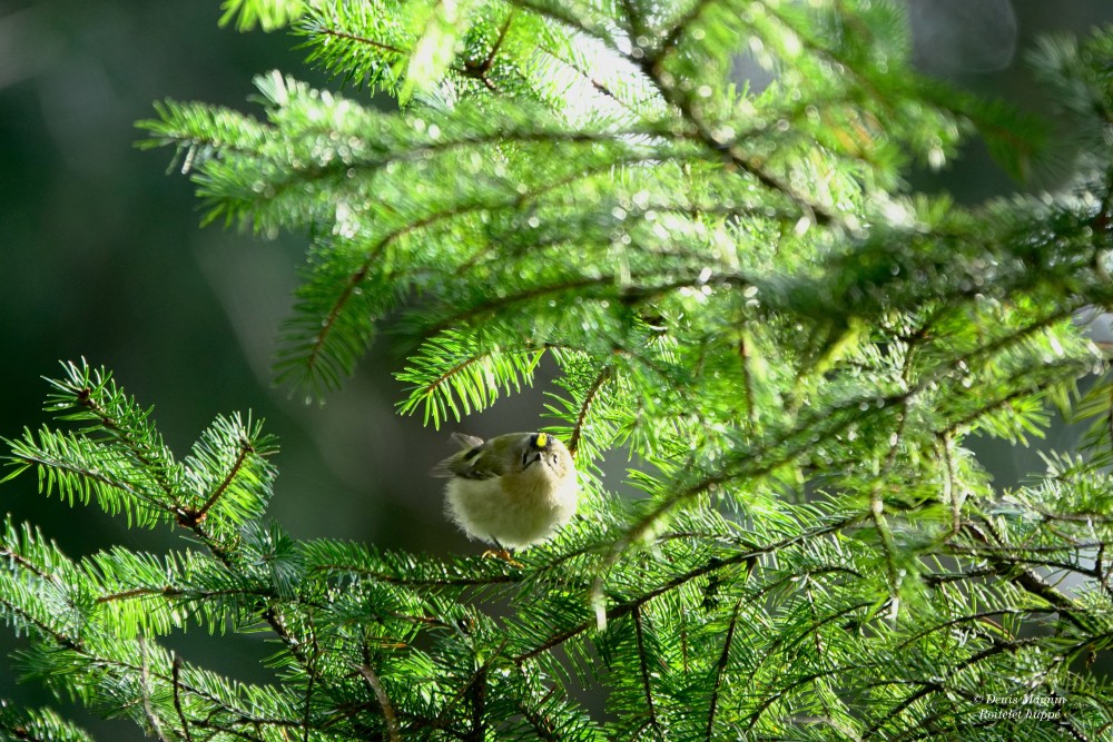 Figée sous l’épais manteau neigeux, la forêt semblerait déserte si de minuscules boules de plumes à l’expression candide ne s’agitaient dans les conifères. Associé aux rondes de mésanges, c’est grâce à la complicité de son sapin protecteur et nourricier que le Roitelet huppé peut affronter les pires intempéries, malgré son poids critique d’à peine cinq grammes. Ce n’est pourtant qu’au prix d’un fébrile combat qu’il parvient à surmonter les longues nuits glaciales de nos hivers, faculté qui défie l’entendement pour un oiseau aussi petit et insectivore de surcroît, obligé de consommer son propre poids chaque jour.