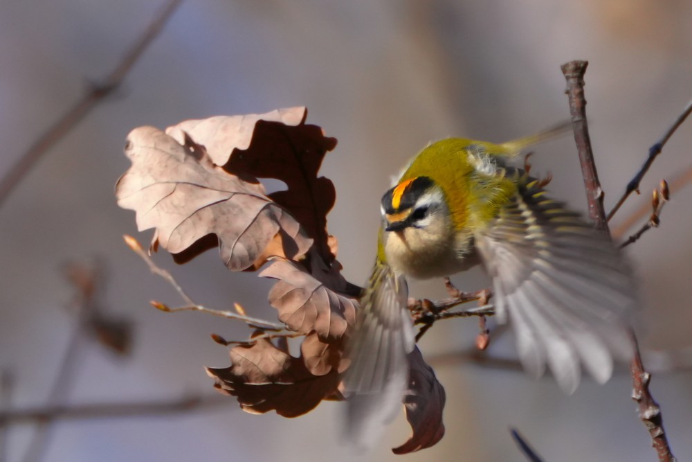 La couronne incandescente du Roitelet à triple bandeau en fait l’un des plus beaux joyaux de notre avifaune. Disputant à l’autre roitelet la palme du plus petit oiseau européen, il est en sursis énergétique permanent et doit consommer l’équivalent de son propre poids chaque jour pour survivre. Plus frileux que son cousin huppé, sa distribution est plus méridionale et il est plus enclin à coloniser les forêts feuillues de plaine et les espaces verts urbains.