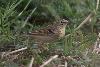Brun fauve pâle dessus et pâle uni dessous; ailes brun foncé bordeées de fauve; sourcil crème et longues pattes jaunâtres; sexes identiques.