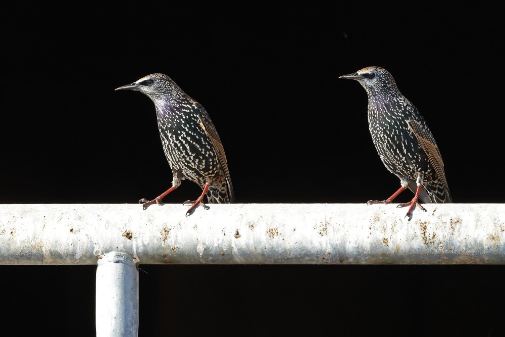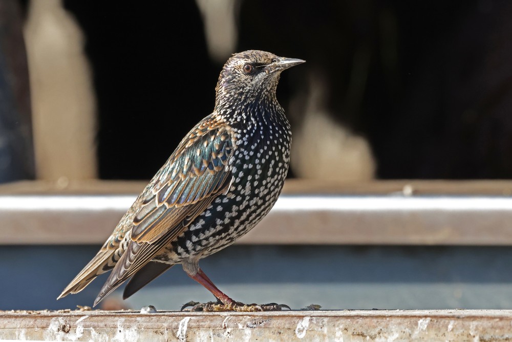 Plumage noirâtre à reflets pourprés et bronzés, pointillé de blanc surtout en hiver; queue courte; ailes pointues; vol direct.