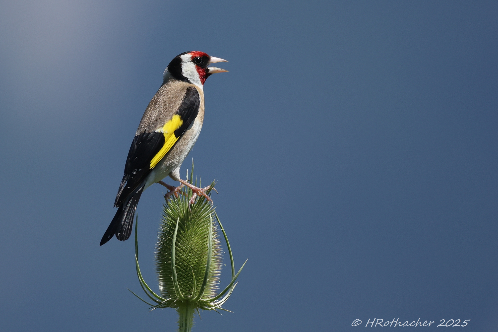 «De grâce épargnez les chardons!» semblent implorer les bandes cliquetantes de Chardonnerets peinturlurés, qui apportent un peu de fantaisie aux côtés des derniers papillons survivant dans nos plaines aseptisées. Laissons fleurir les chardons, ils nous enchanteront de leur cortège d’amateurs ailés. De nos jours encore, le petit Ibère expatrié est souvent fait prisonnier afin d’être admiré à loisir dans sa patrie de coeur, mais alors quel pathétique spectacle en comparaison de l’être libre virevoltant dans la prairie fleurie!