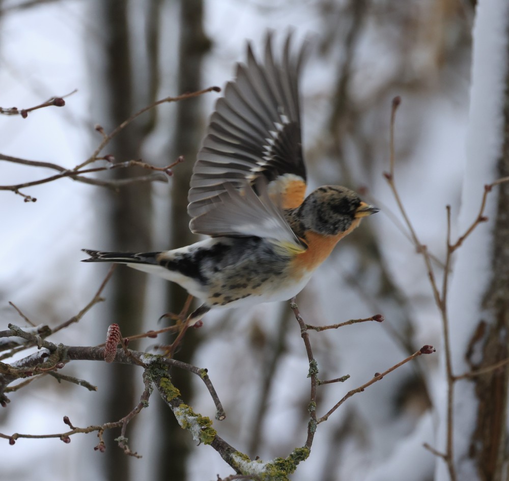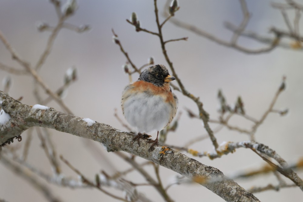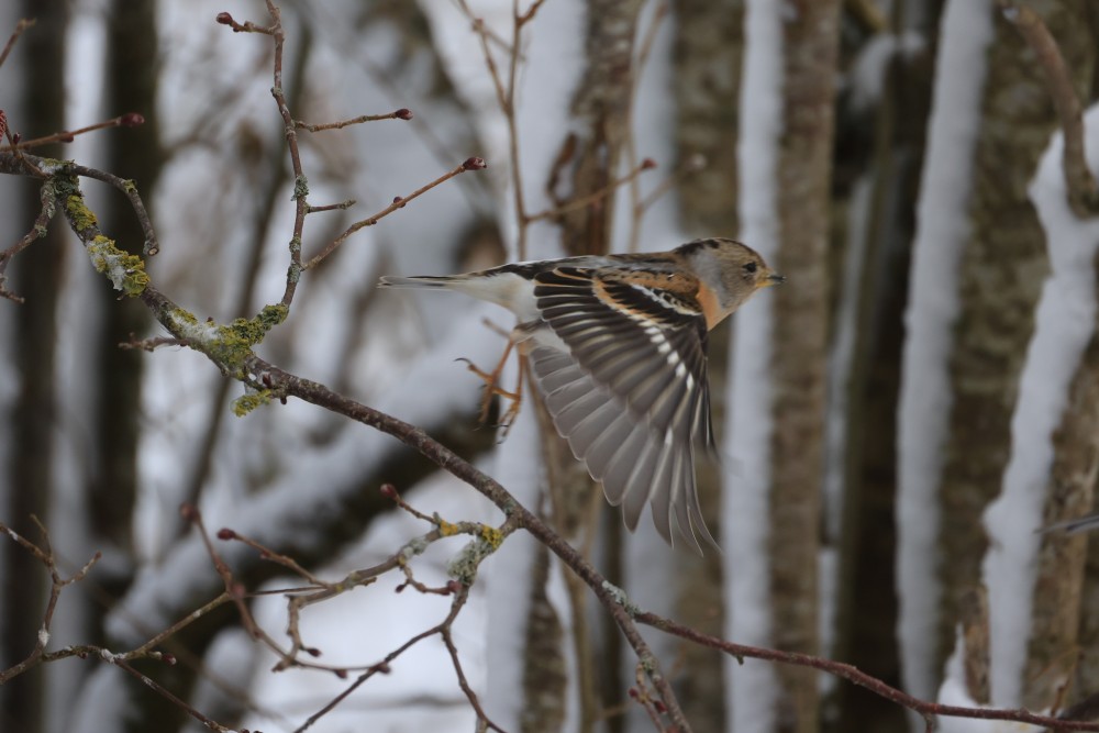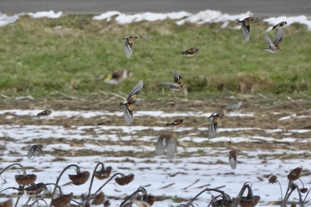 Le peuple nomade des Pinsons du Nord se mue certains hivers en monstre tentaculaire obscurcissant le ciel de millions de sujets, s’abattant sur le sol des hêtraies pour engloutir les faines. Comme ravagé par un feu de brousse, le tapis de feuilles mortes paraît s’embraser sous l’assaut éclair des nuées orange qui s’évanouissent aussi vite qu’elles sont apparues. Les vols tournoyants tels des bancs de poissons audessus des dortoirs constituent un des spectacles les plus fascinants qui soient. De telles concentrations ne sont connues chez aucun autre oiseau en Suisse, un seul dortoir pouvant rassembler une partie importante de la population européenne.