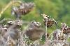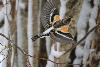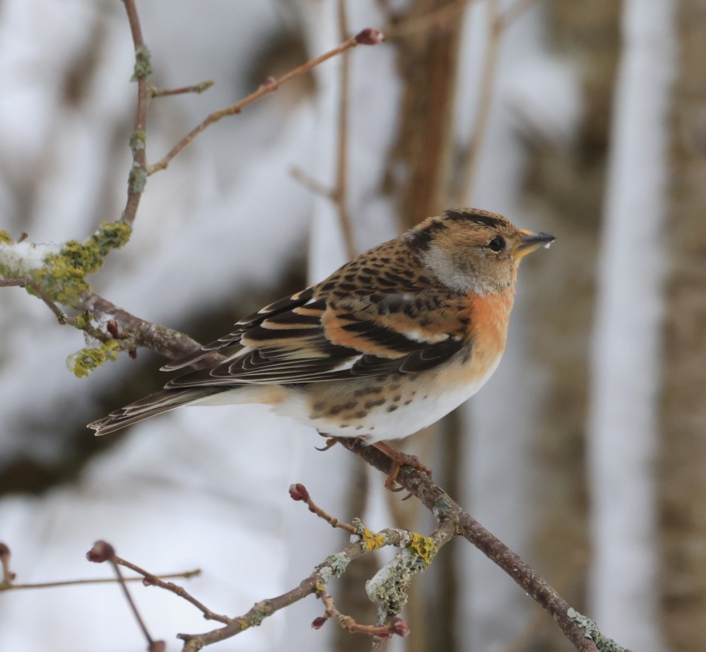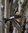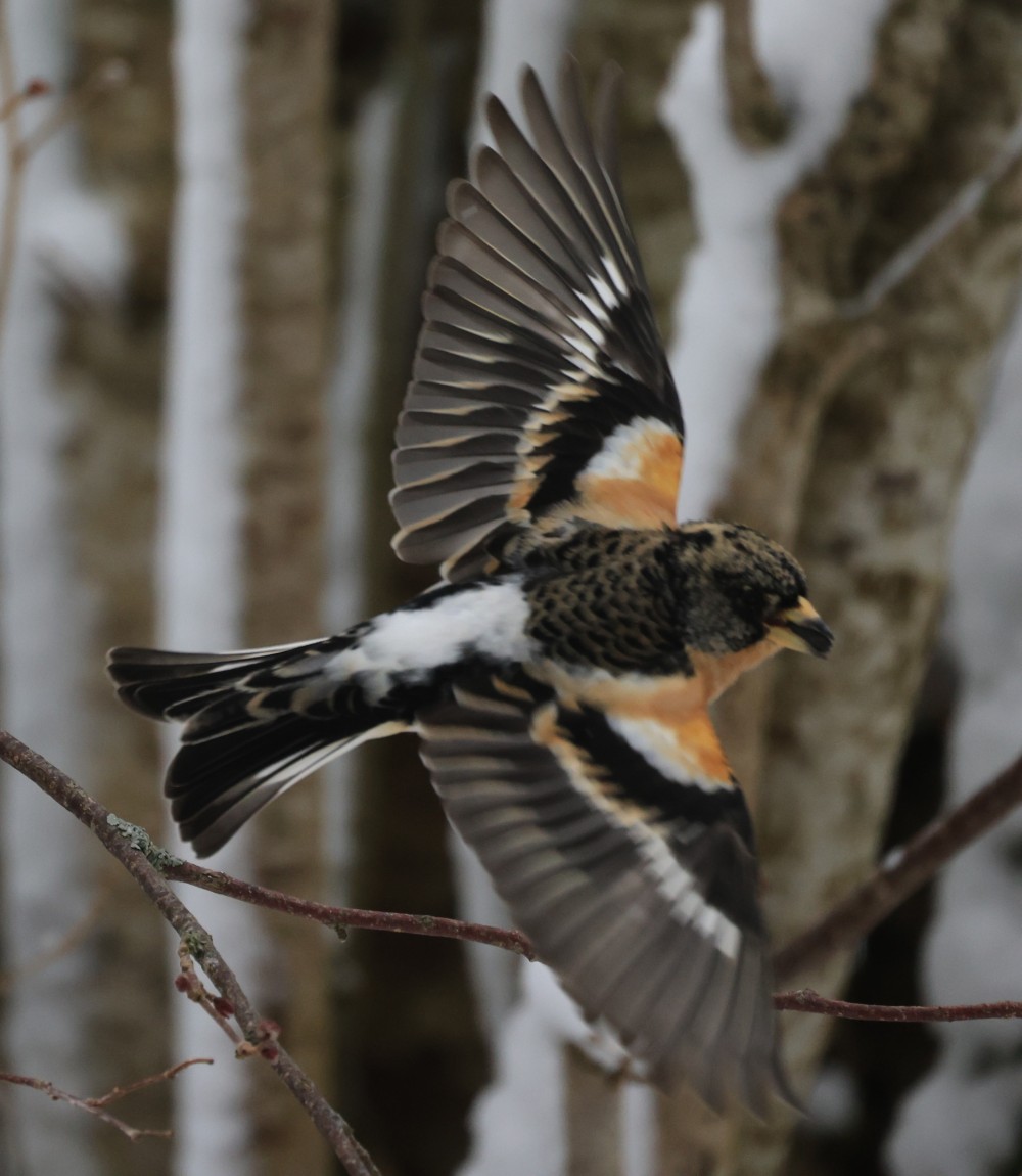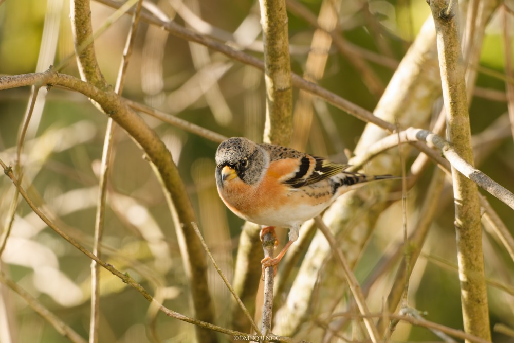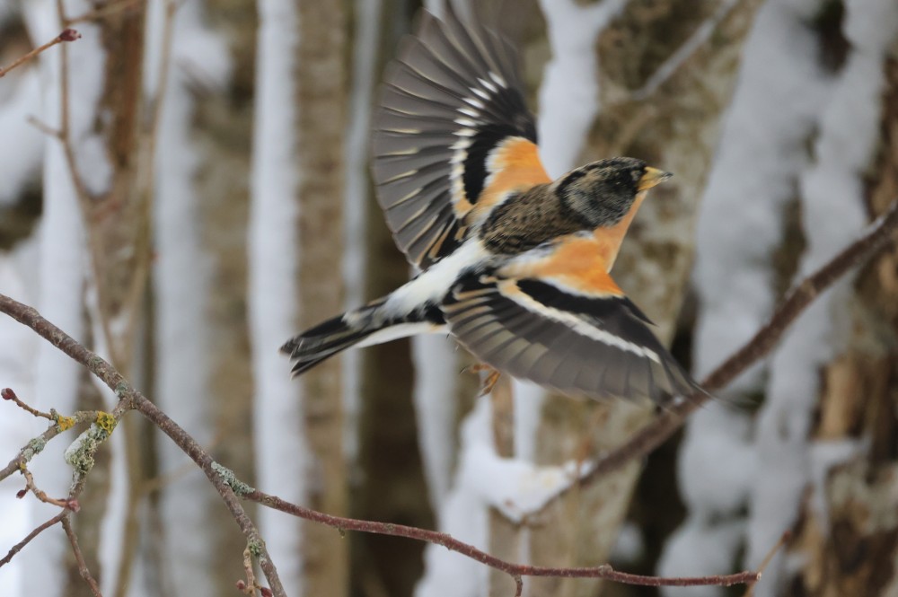 Le peuple nomade des Pinsons du Nord se mue certains hivers en monstre tentaculaire obscurcissant le ciel de millions de sujets, s’abattant sur le sol des hêtraies pour engloutir les faines. Comme ravagé par un feu de brousse, le tapis de feuilles mortes paraît s’embraser sous l’assaut éclair des nuées orange qui s’évanouissent aussi vite qu’elles sont apparues. Les vols tournoyants tels des bancs de poissons audessus des dortoirs constituent un des spectacles les plus fascinants qui soient. De telles concentrations ne sont connues chez aucun autre oiseau en Suisse, un seul dortoir pouvant rassembler une partie importante de la population européenne.