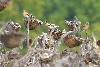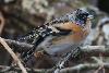 Croupion blanc, chez le mâle, poitrine et petites couvertures orange; tête et dos noir brillant en été, brunâtre en hiver; chez la femelle, tête et dos gris à raies sombres.