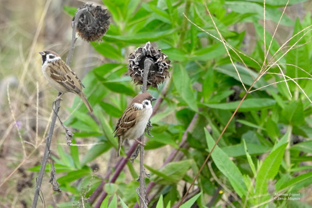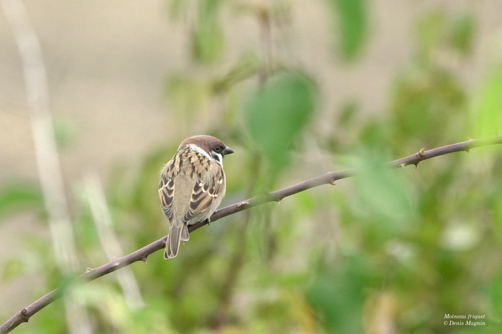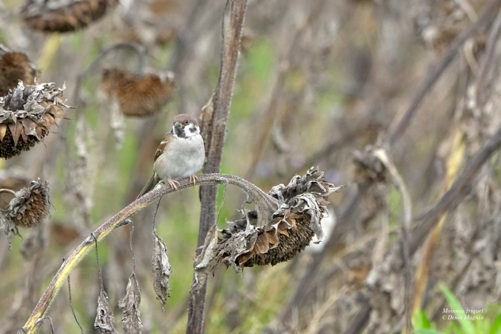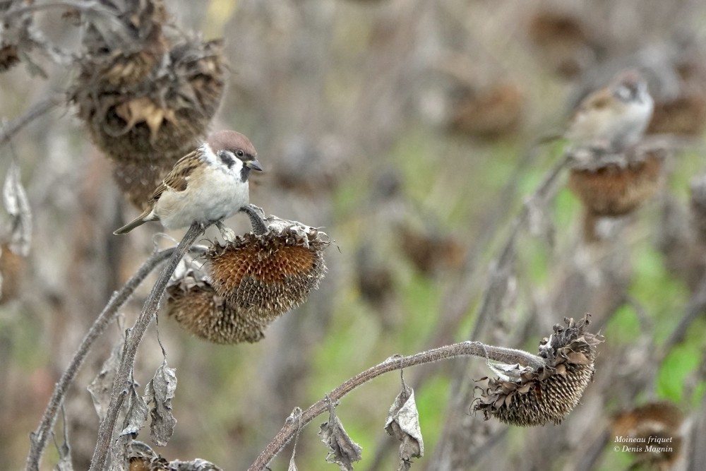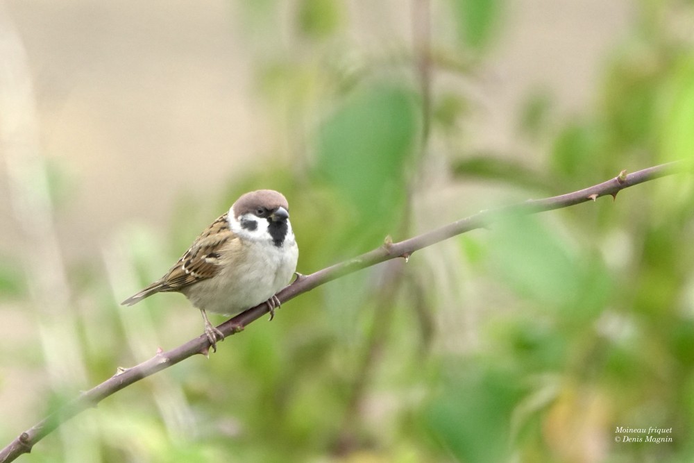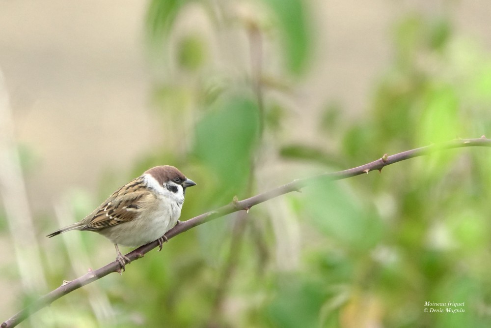 Le coquet Friquet aux joues fardées semble revendiquer l’égalité des sexes, la femelle étant identique au mâle. Originaire des steppes, il est la version campagnarde du Moineau domestique, bien plus affranchi de l’Homme que ne l’est son cousin des villes. Bien qu’il soit sylvicole pendant la période de reproduction, il est le premier des deux moineaux à avoir été touché par la banalisation du paysage induite par l’intensification de l’agriculture. Le plus migrateur de nos moineaux apparaît en hiver dans les jardins périurbains, voire en montagne, d’où il disparaît pendant la période de reproduction.