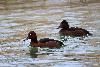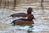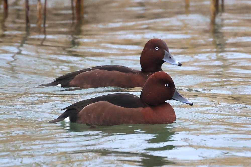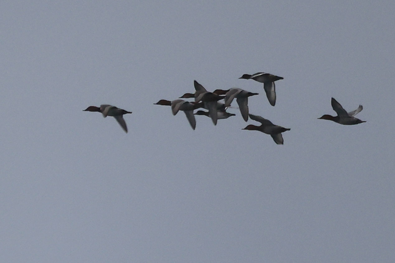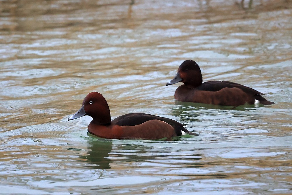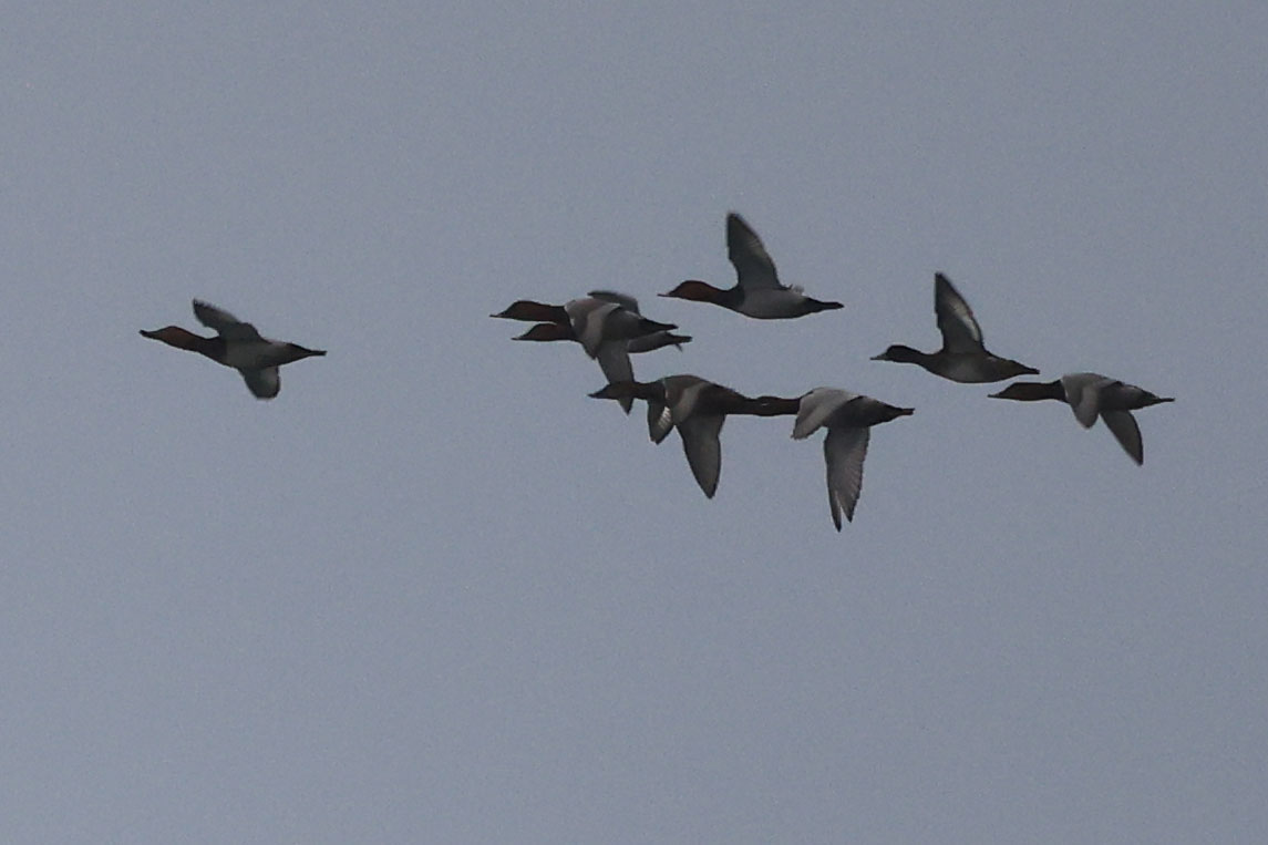 La découverte d’un Nyroca perdu dans un groupe d’autres fuligules est généralement la récompense d’une patiente recherche, l’espèce passant souvent inaperçue. C’est le plus rare des canards européens hivernant régulièrement en Suisse, devenant la vedette locale lorsqu’il revient année après année au même endroit. C’est le plus petit des fuligules, au crâne pointu et au bec dans le prolongement du front.