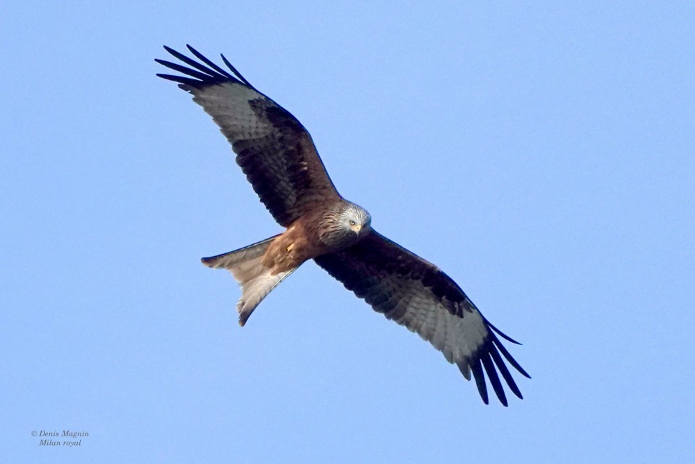 Le Milan royal est sans conteste l’un des plus élégants de nos rapaces, manoeuvrant avec une grâce et une agilité peu communes pour un oiseau de si grande taille. On ne se lasse pas de le voir glisser sans effort, ajustant sa direction avec les amples mouvements de gouvernail de sa longue queue profondément échancrée, du plus bel effet. Sa densité en Suisse correspond approximativement à la frontière linguistique: en Romandie, c’est le milan rare par opposition au Milan noir, alors que c’est l’inverse en Suisse allemande.